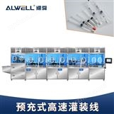 本设备为我公司工程技术人员研发的西林瓶粉剂灌装设备。一体式的上瓶灌装轧盖机,运行更稳定,现场组装调试更方便,全自动粉剂罐装机构,让综合性生产的客户使用更方便,可在多物料共同灌装、多物料替换灌装时,减少清洁调整工作,只需要使用相应的灌装机构即可。整机设计合理,运行可靠稳定,操作简单。配合贴标机,可实现从上瓶开始到成品输出的全自动工作。 FJZY系列一体机用于各种瓶型的粉剂的小剂量高精度 分装扎盖。可灌装冻干粉、三七粉、穿山甲粉、珍珠粉、人生粉等。广泛应用于制药、日化及科研领域。 工作流程: 人工上瓶→自动理瓶→自动灌装→自动压胶塞→成品完成。 其中理瓶灌装压塞轧盖均在百级层流罩覆盖下的洁净空间。
