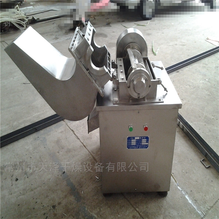在化工、医药、食品等行业的粉碎加工过程中,由于受物料原始形状各异的影响很多物料不可能一次性完成粉碎全过程,往往要经过粗粉碎,细粉碎和过筛过程。根据这一情况,综合分析了各种原材料的特性和现有的粉碎设备,精心研制了 CSJ粗碎机系列。该机适应于多种化工、医药、食品及其它韧性、硬性材料的粗碎机加工,如橡胶、塑料、中药原料、环氧树脂、食糖等。粉碎是利用机械力破坏固体物料的内聚力使其断裂而减小固体物料几何尺寸的过程。该机具有结构简单、小而合理、操作方便、低噪音、低能耗、粉碎效果好、所得颗粒均匀等优点,是粗碎加工理想之设备。该机由机架、电机、进料斗和粉碎机构四个部件组成,物料经进料斗直接进入粉碎室,经中速旋转的动刀与定刀的强力剪切达到粉碎的目的。通过调节动刀与定刀的间隙,控制所得颗粒的大小。通过筛网的控制将达到要求的颗粒从出料口排出,而未达到要求的物料在粉碎室内继续剪切粉碎,直至达到要求。