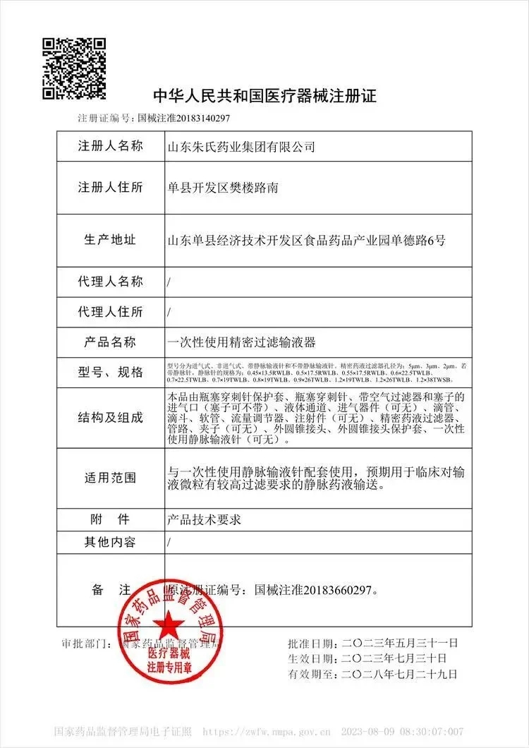 适用范围/预期用途:与一次性使用静脉输液针配套使用,预期用于临床对输液微粒有较高过滤要求的静脉药液输送。