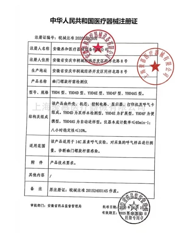 适用范围/预期用途:该产品适用于14C尿素呼气试验,对采集的呼气样品进行测量,诊断幽门螺旋杆菌感染。