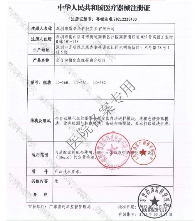 适用范围/预期用途:与适配试剂配合使用,用于人体血液中的糖化血红蛋白(HbA1c)的定量检测。